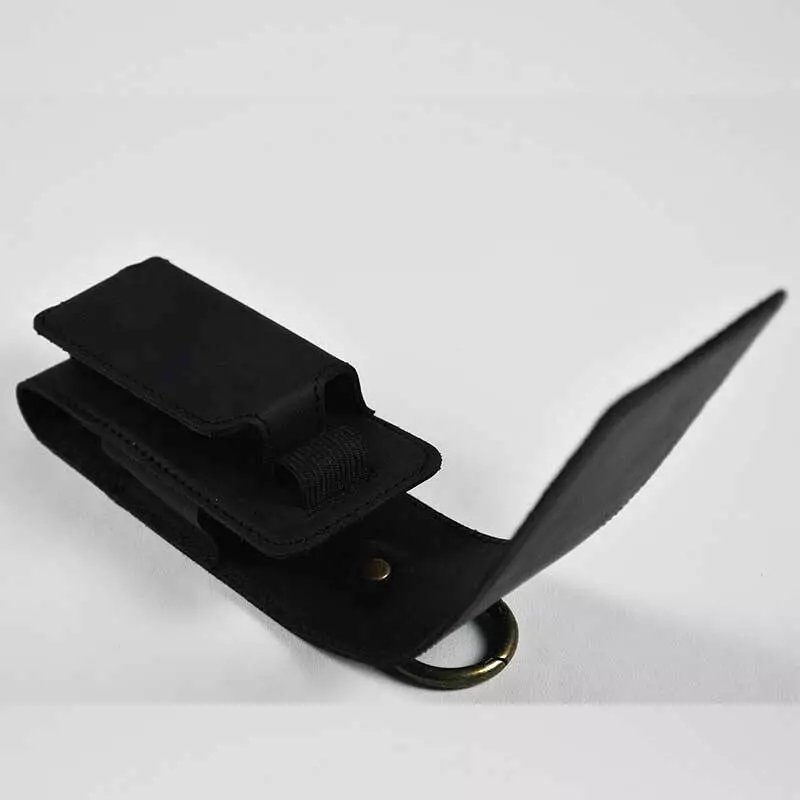 Чохол оснащений кільцем-карабіном, за допомогою якого можна зафіксувати шкіряний виріб на пояс, ручку або ремінь сумки.