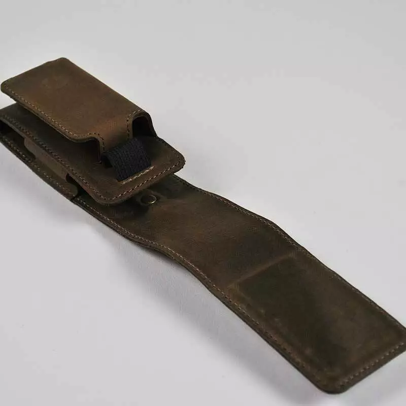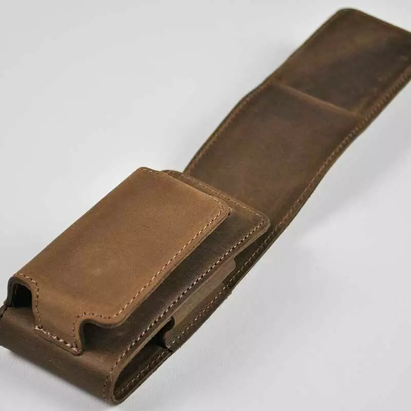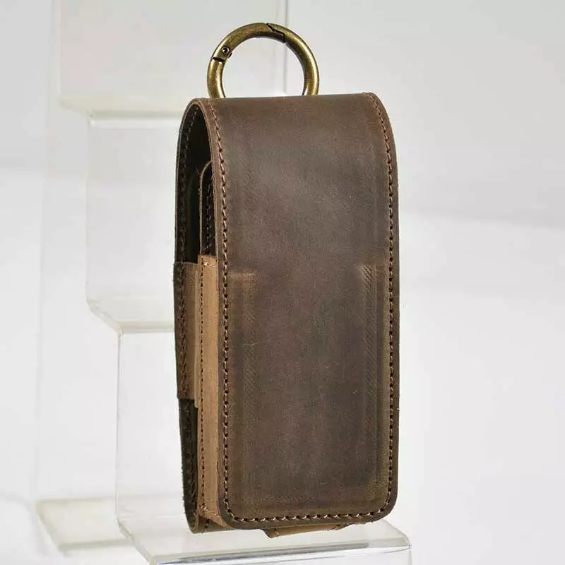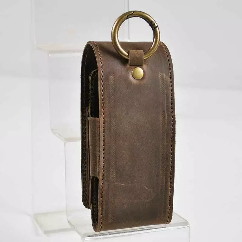 Чохол оснащений кільцем-карабіном, за допомогою якого можна зафіксувати шкіряний виріб на пояс, ручку або ремінь сумки.