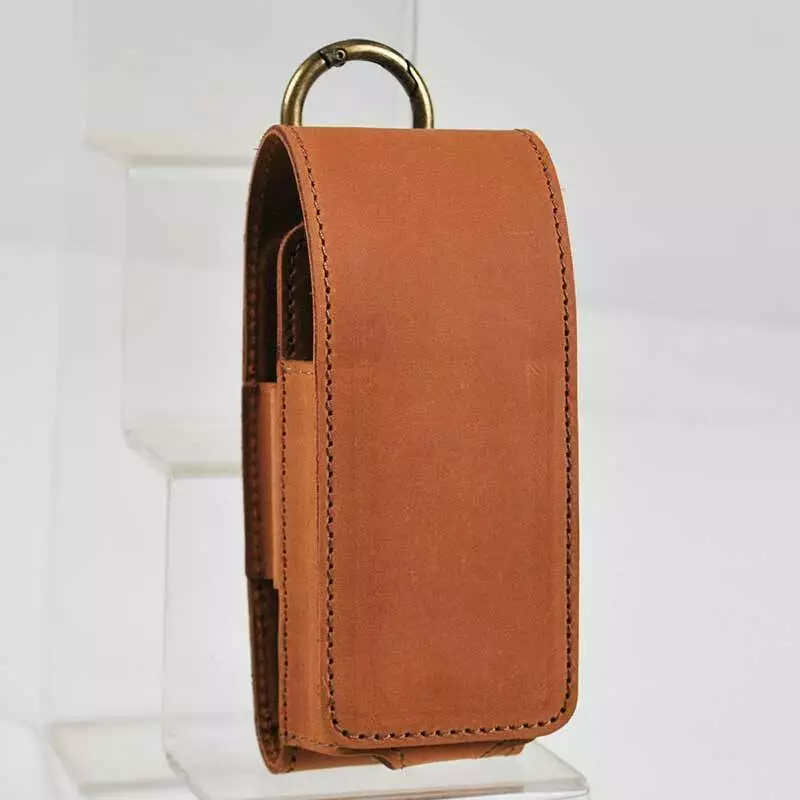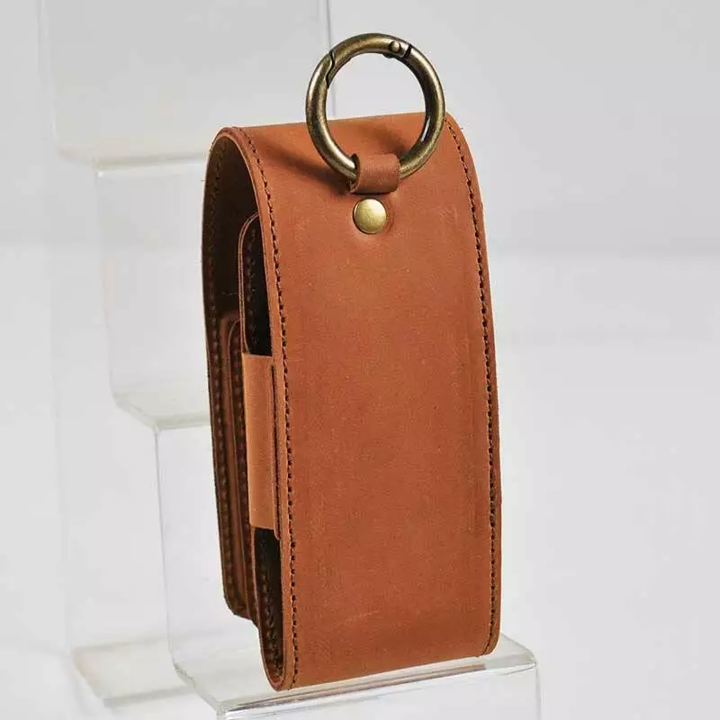 Чохол оснащений кільцем-карабіном, за допомогою якого можна зафіксувати шкіряний виріб на пояс, ручку або ремінь сумки.