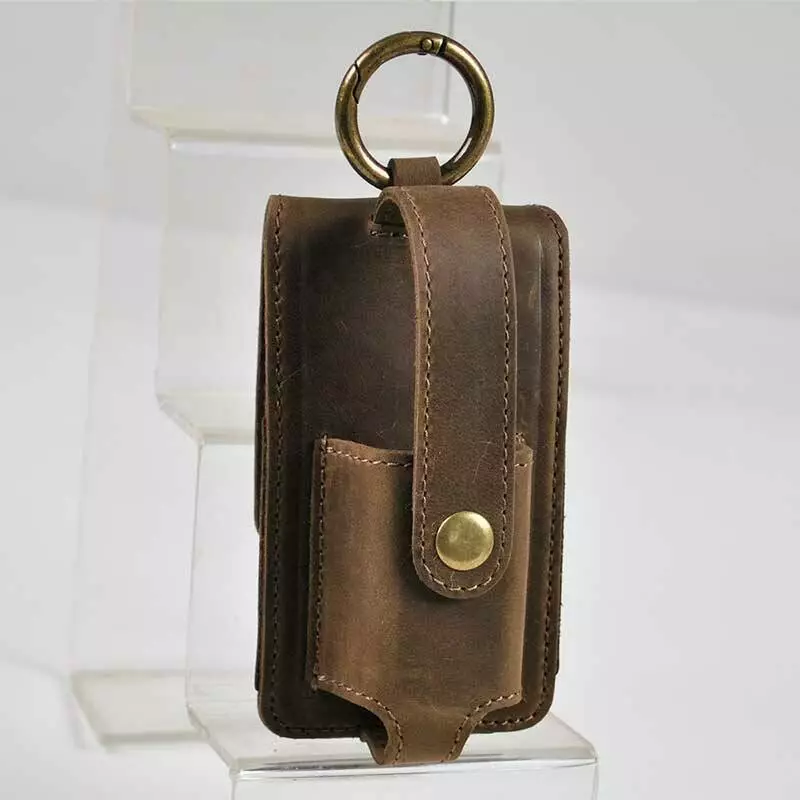 Кейс оснащений кільцем-карабіном, за допомогою якого можна зафіксувати шкіряний виріб на поясі, ручці або ремені сумки.
