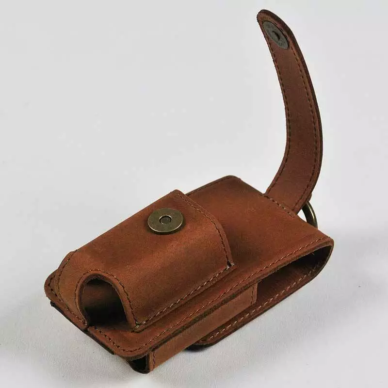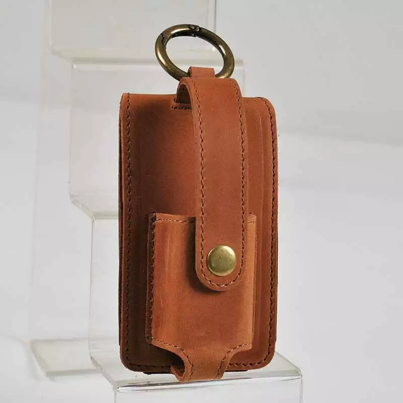 Кейс оснащений кільцем-карабіном, за допомогою якого можна зафіксувати шкіряний виріб на поясі, ручці або ремені сумки.
