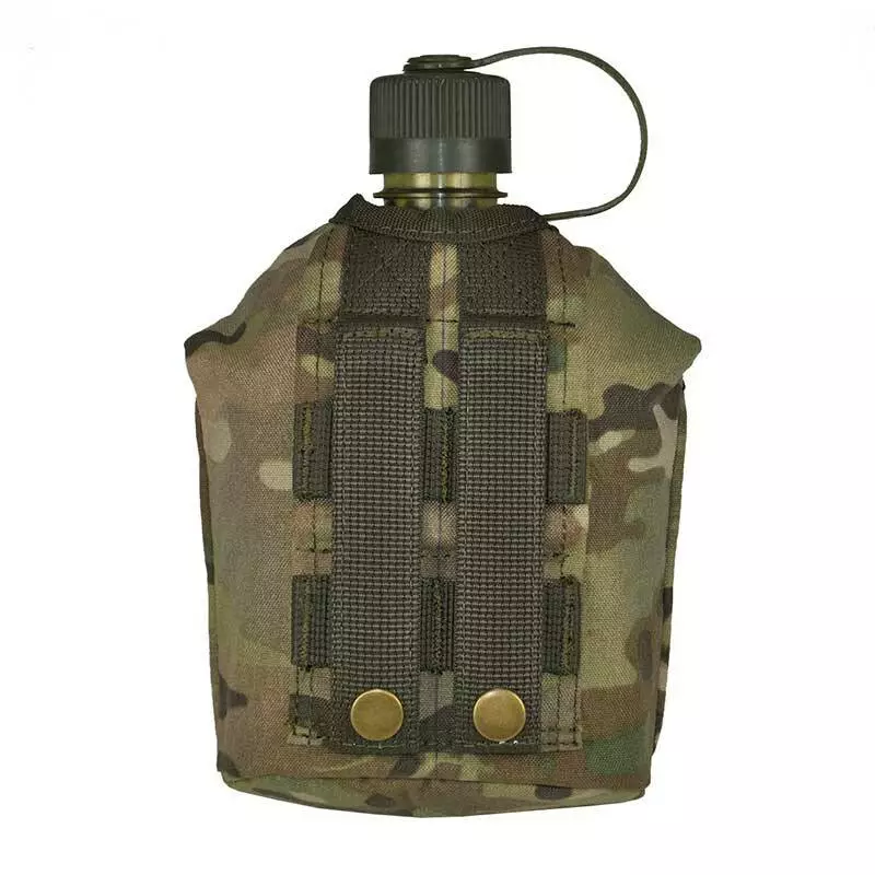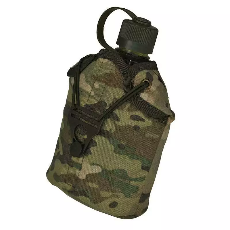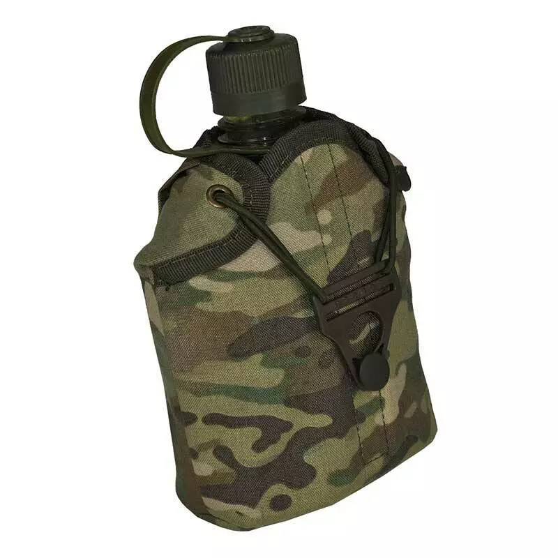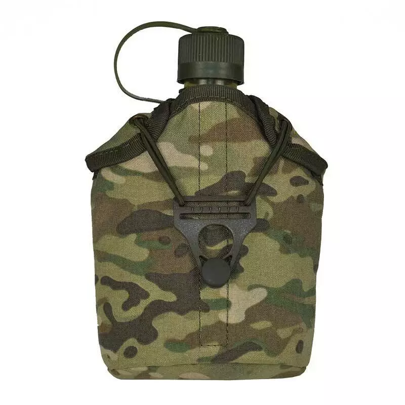 Чохол для фляги FL-01-02 пошитий з тканини кордура в кольорі мультикам із щільністю плетіння 1000D, тканина має поліуретанове просочення, що надає виробу водовідштовхувального ефекту.