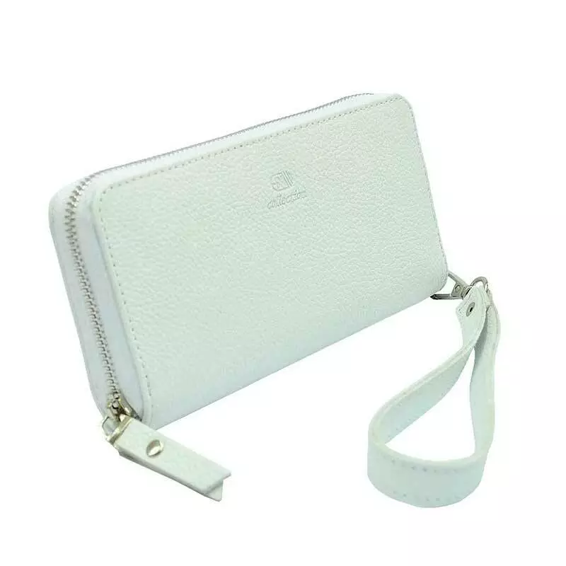 Шкіряний жіночий гаманець на блискавці білого кольору із натуральної шкіри Флотар.