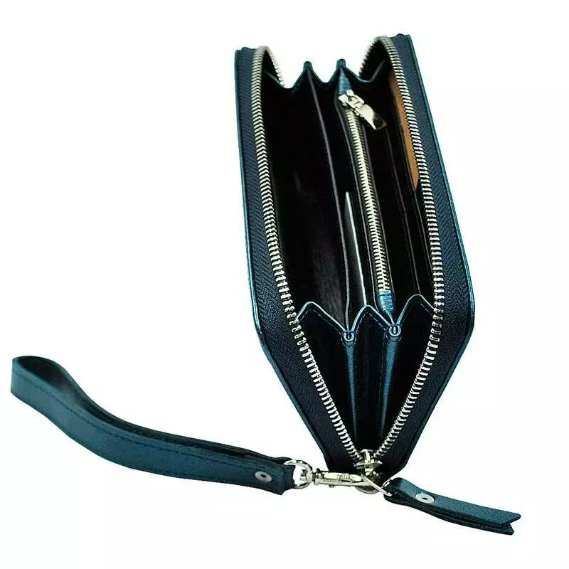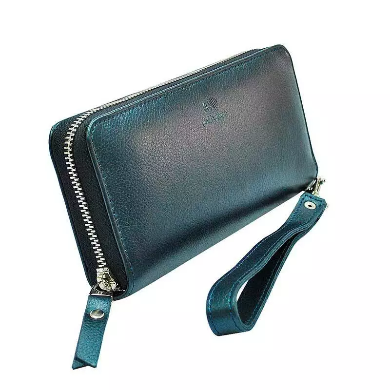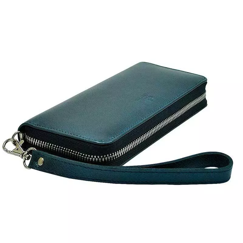 Шкіряний жіночий гаманець на блискавці синій з натуральної шкіри флотар.