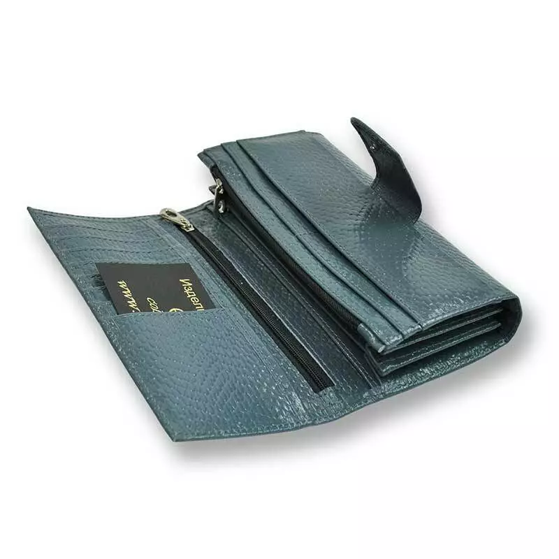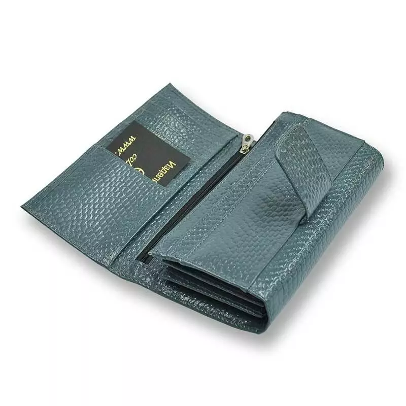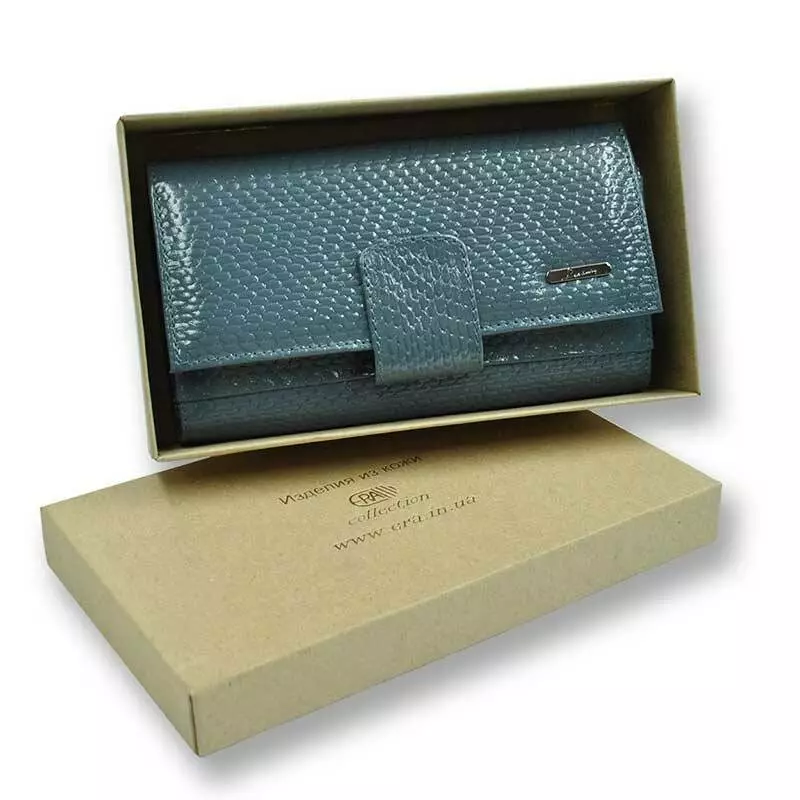 Жіночий гаманець пошитий з натуральної шкіри з тисненням сірого кольору.