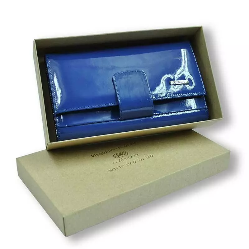Гаманець жіночий ERA на кнопці шкіряний лак Синій (ERA-PW-01-05)