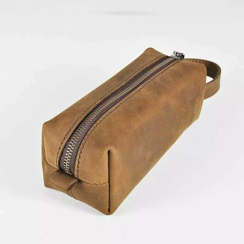Шкіряний несесер скромного розміру задовольнить потреби у необхідних невеликих речах у дорозі чи подорожі.