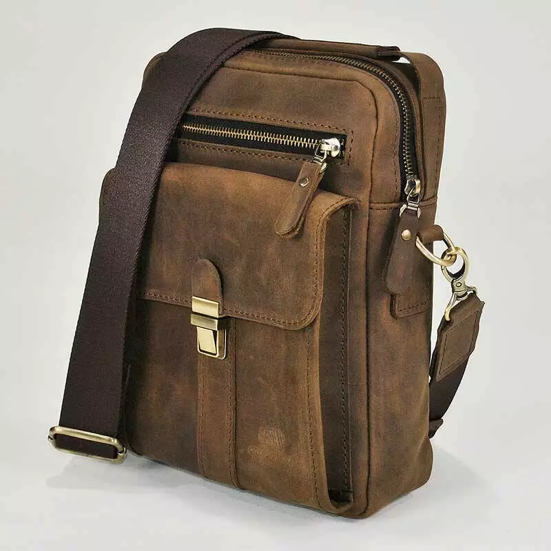 Чоловіча сумка spl-01-02 пошита із натуральної шкіри Crazy Horse коричневого кольору.