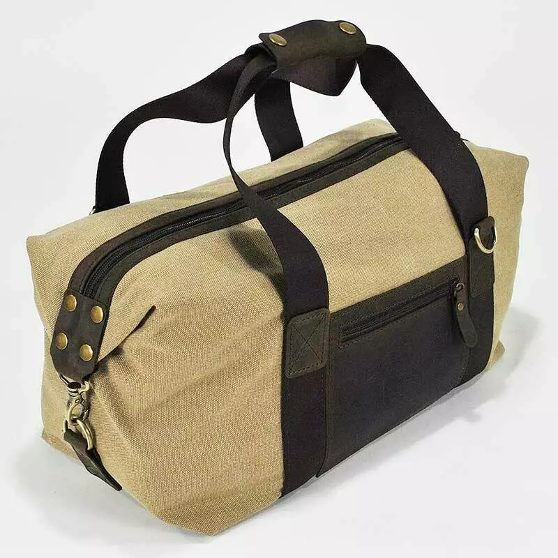 Дорожня сумка ERA-SK-01-04 пошита з тканини канвас турецького виробництва, 100% бавовна в комбінації із натуральною шкірою Crazy Horse.