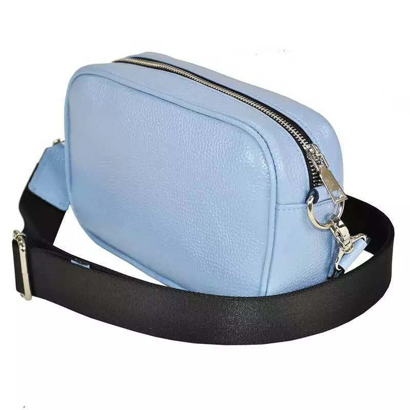 Жіноча сумка з натуральної шкіри флотар блакитного кольору пошита із застосуванням канта (кедер), обтягнутого аналогічною шкірою, з якої збирається виріб.