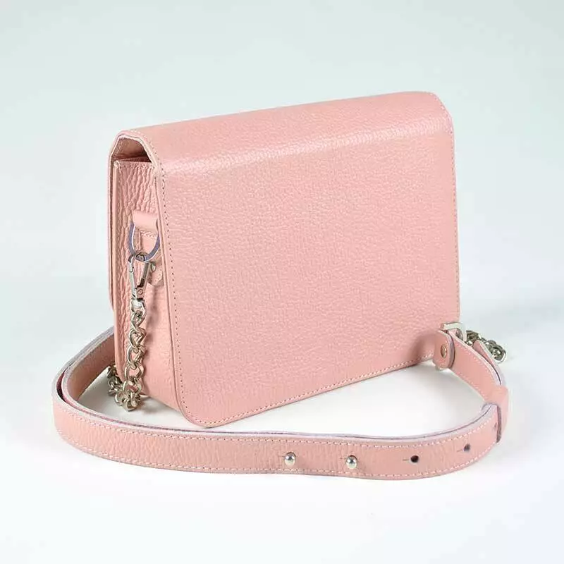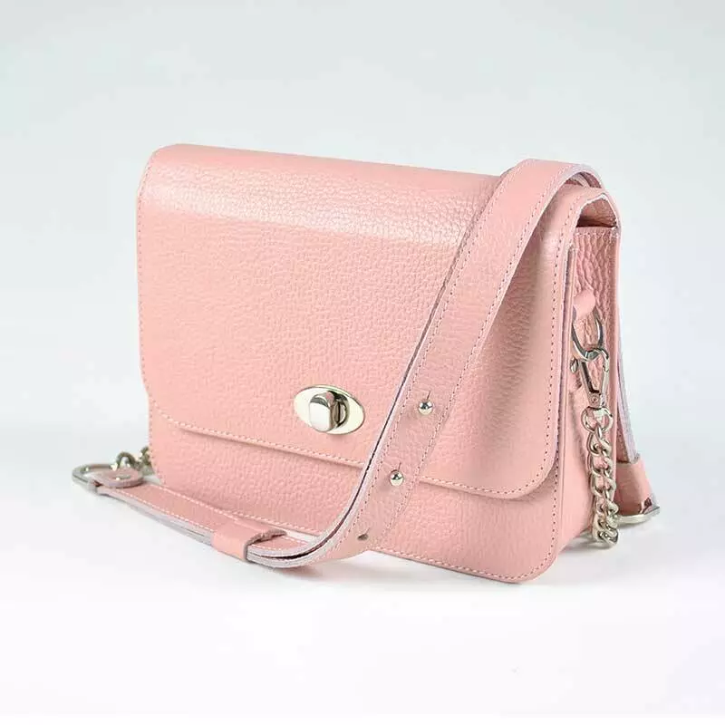 Шкіряна жіноча сумка через плече пошита з натуральної шкіри флотар рожевого кольору .