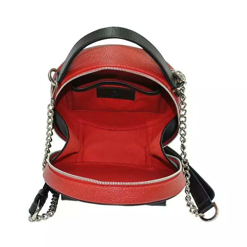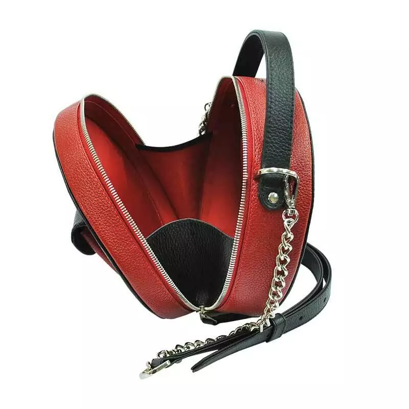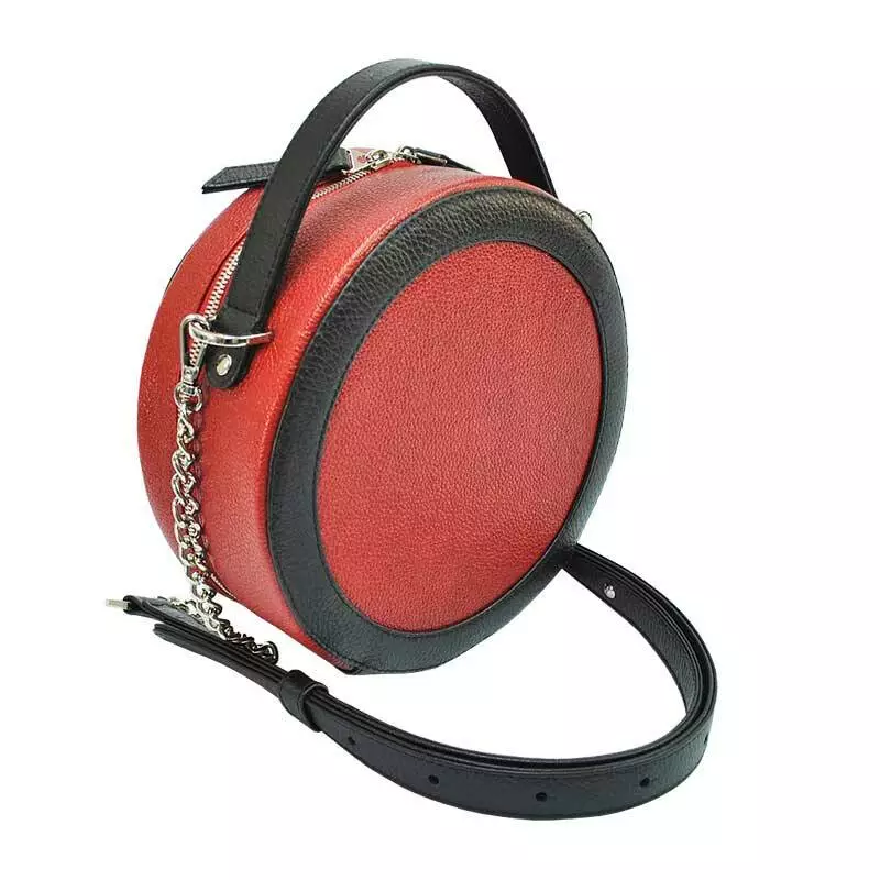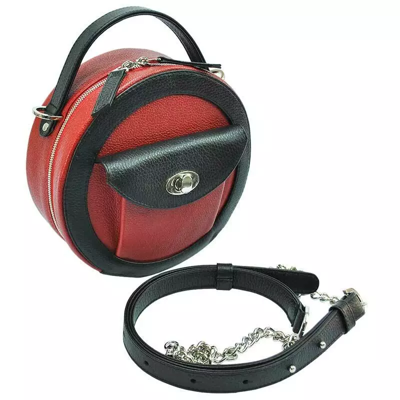Жіноча шкіряна сумка з натуральної шкіри флотар червоного кольору з комбінацією чорної шкіри.