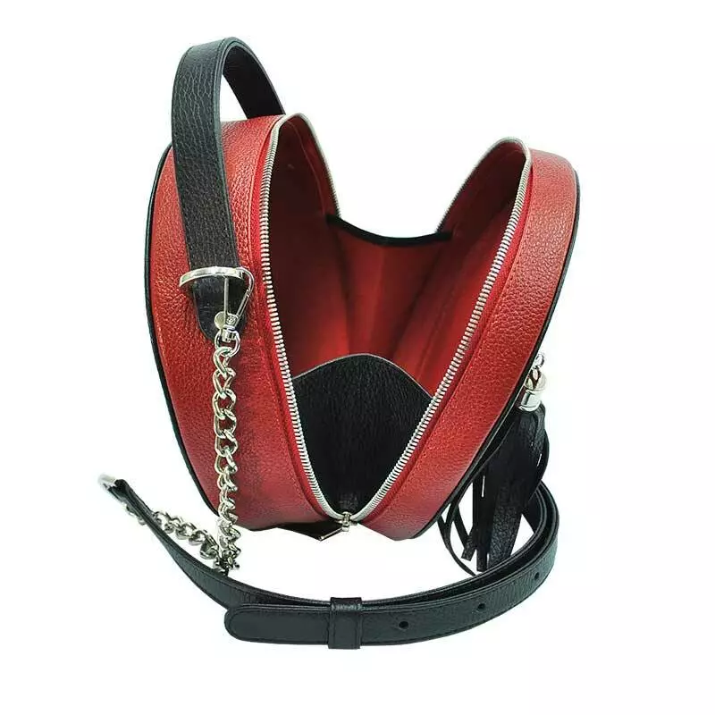 Шкіряна сумка пошита з натуральної шкіри флотар червоного кольору з комбінацією чорного.