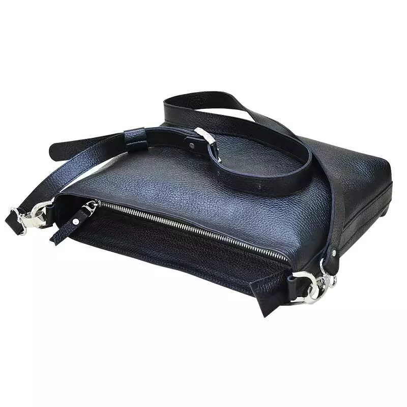 Шкіряна жіноча сумка через плече "Кросбоді" з натуральної шкіри флотар чорного кольору.