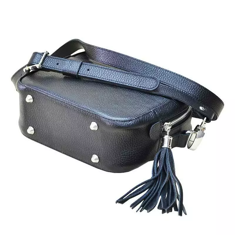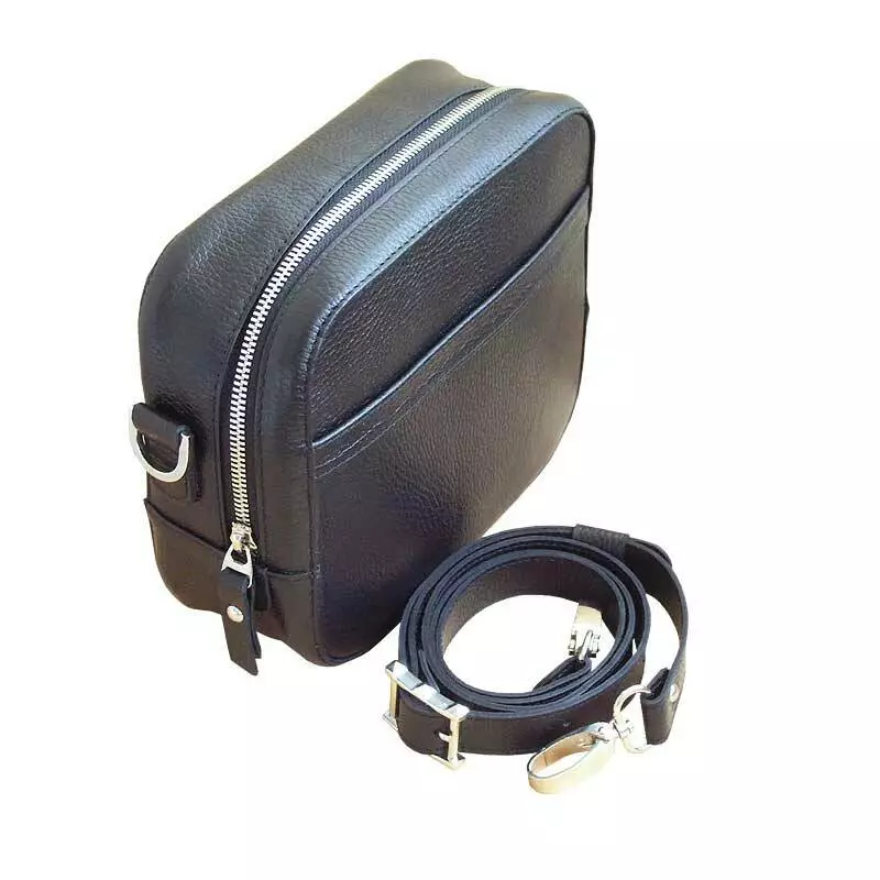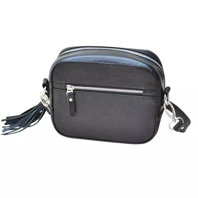 Шкіряна сумка через плече пошита з натуральної шкіри флотар чорного кольору.