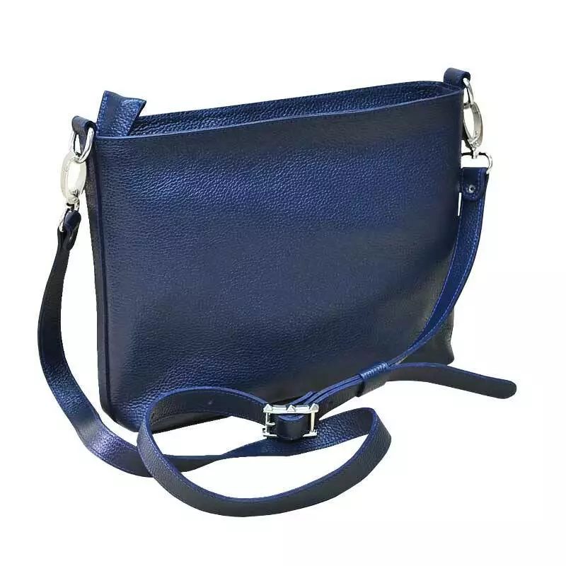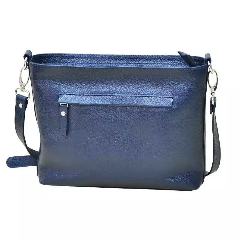 Шкіряна жіноча сумка через плече "Кросбоді" з натуральної шкіри флотар синього кольору.